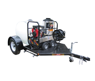 There are three trailer models and two slide in frame designs to chose from in this series of Mobile Wash Systems. Each trailer is constructed of heavy wall steel tube frame utilizing sealed beam lights with the wiring inside the tube frame to reduce exposure to the elements that cause premature light failures.